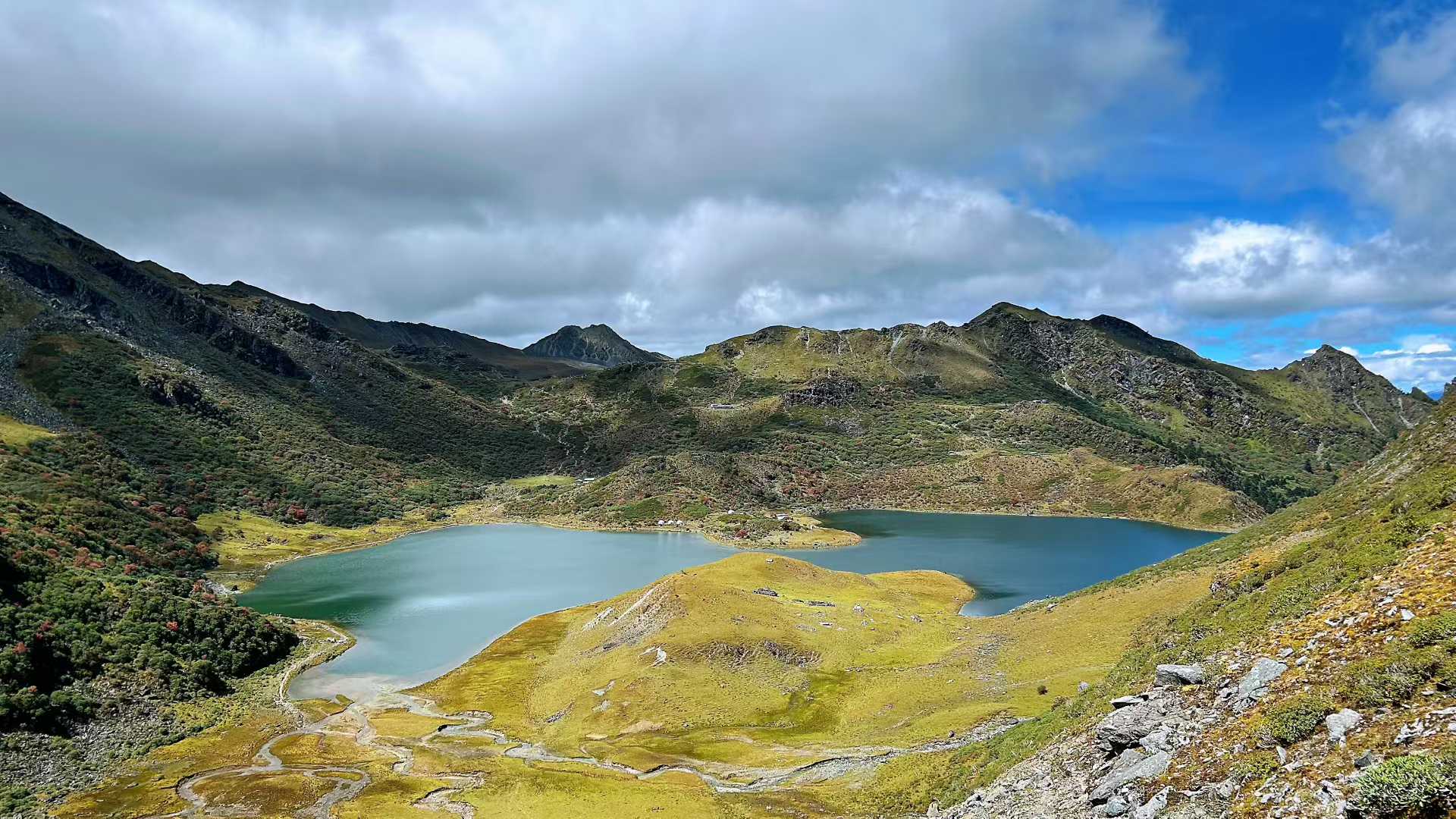 10月2日早上六点半,辉总开车到小区门口,上车出发。当天到达云南迪庆香格里拉,下午2点重装开始徒步。晚上21点多,到达海拨4000多米的哈巴西坡双湖营地扎营,爬升900多米。晚上22点在营地看到了很美的烟花。